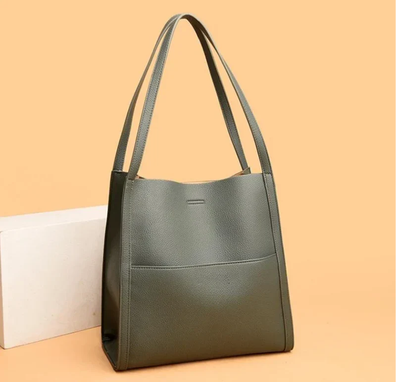 Este bolso tote es la combinación perfecta de estilo y funcionalidad. Confeccionado en piel sintética de alta calidad con textura granulada, ofrece un diseño minimalista y sofisticado que complementa cualquier atuendo.