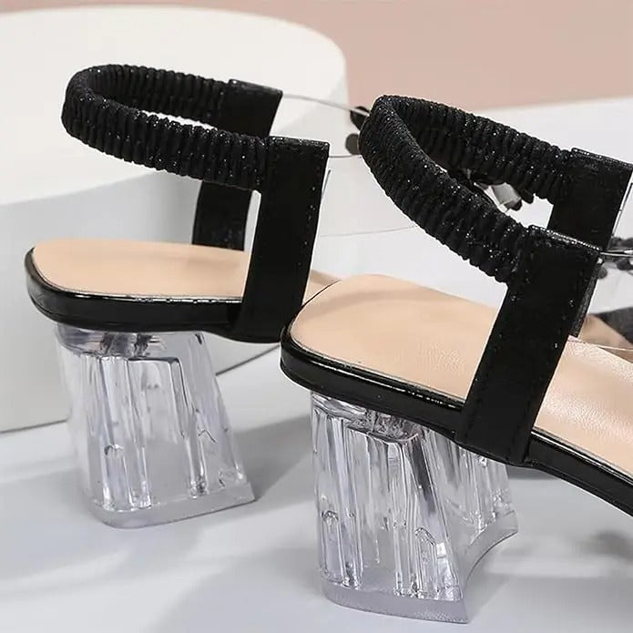 • Tacón medio transparente de bloque, ideal para brindar comodidad sin perder elegancia.